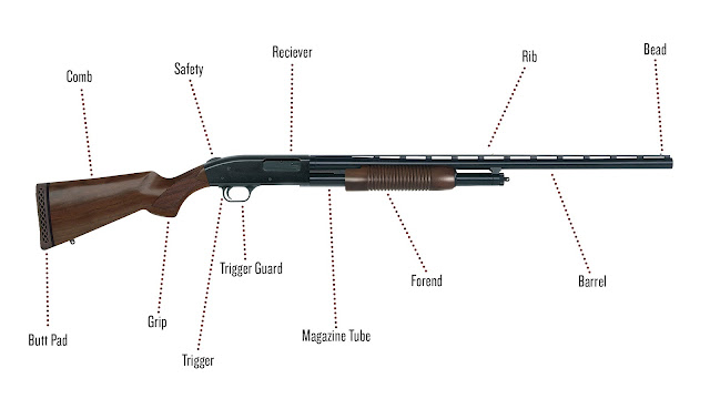 For reference, here are the basic parts of a shotgun and pistol before we begin.