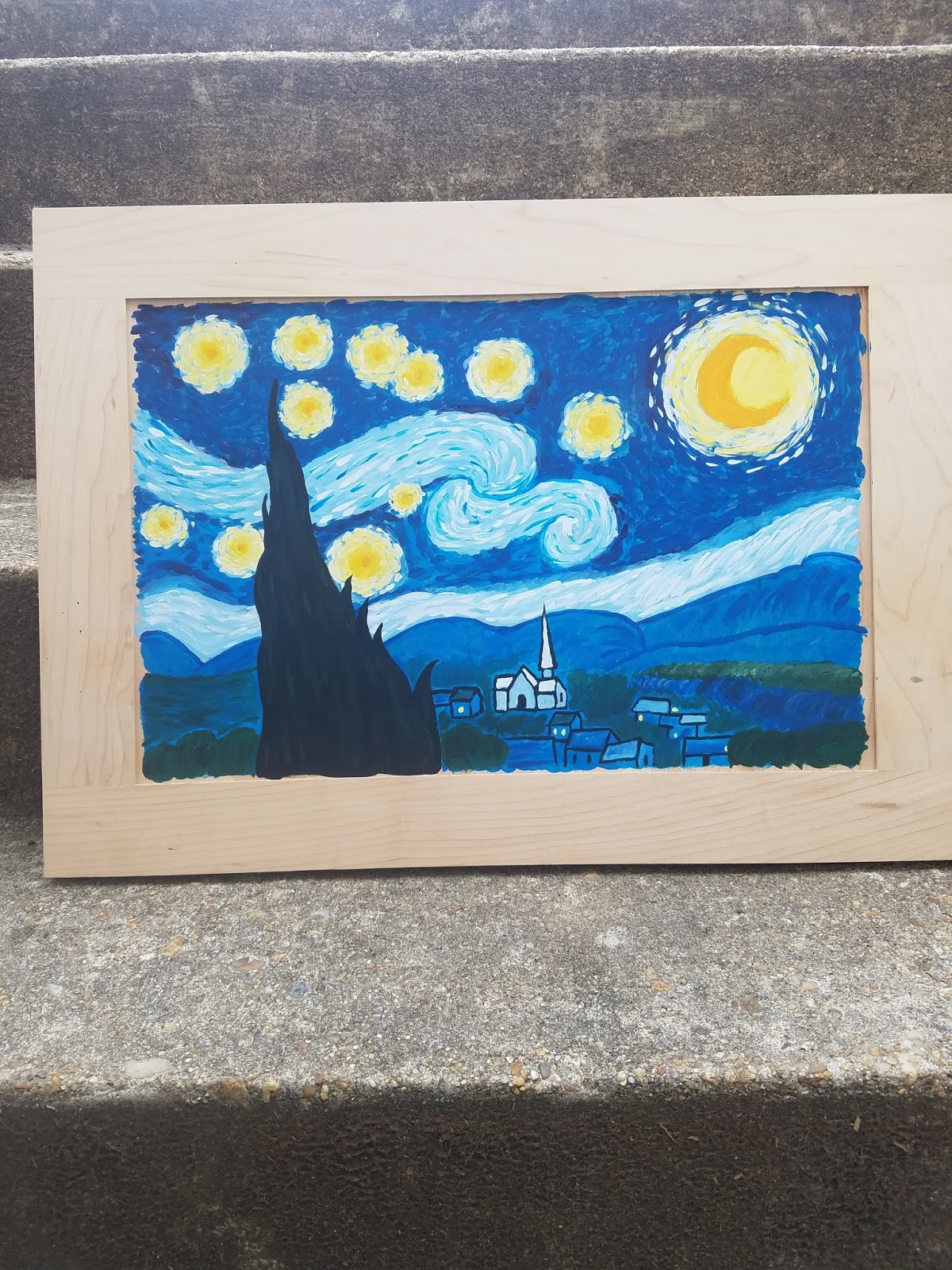 • Look! I painted Starry Night as a gift for my mom's birthday. I'm pretty proud of how it came out, although against the real thing, it looks amateurish.